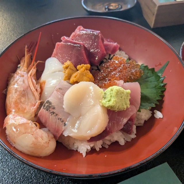 おらが丼。こちらの地元の名物丼。それぞれのお店で中身は違っているけど、地産地消を意識した丼です。お米は少なめにしてあります。