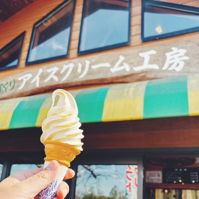 ソフトクリームをシェア。黄色ぽい見た目に反して、お味は意外とあっさり。