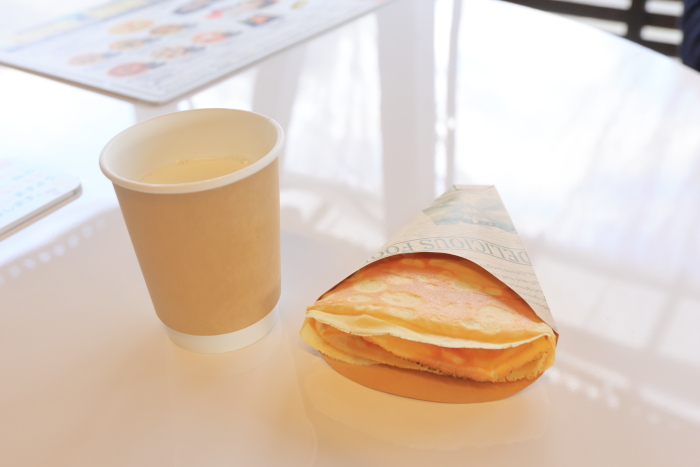 ここへ来たら、お決まりの組み合わせ。ブラウンスイスのホットミルク。これはめずらしいA2ミルク。ラクレットのクレープ。前回よりクレープの焼き方が変わってた。パリパリになった。最近、パリパリのクレープが流行ってるよね。