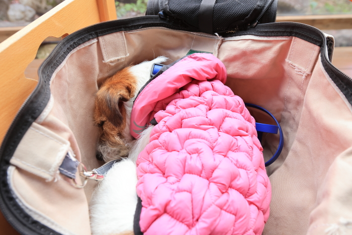 ルルはキャンプやハイキングで疲れていたので、バッグで寝てました。富士見で犬店内OKで、ヘルシーな食事ができるところ、探してます!原村でもOK。知ってる人がいたら教えて欲しいなぁ。
