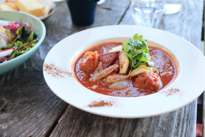インナーテラスのイスがちょっと汚れてるのが気になった。雑巾で拭きたかったな。あとお店の入り口とか周りも、キッチンカウンターもものだらけ。たぶん、片付けが苦手なオーナーだと思う。もしモノが少なければ、もう少しオペレーションは良いと思う。