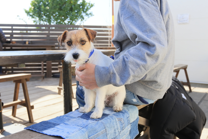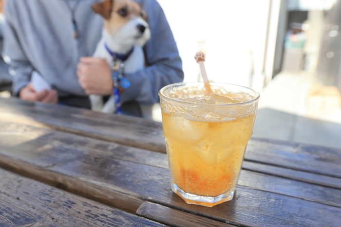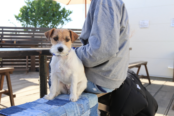 相模原公園でメタセコイヤを見に行った後、そのまま南下して海へ。ここへ来たら、食べる所も遊ぶところも困らないと思って。そして、大正解。茅ヶ崎は犬天国だ。こんな食堂でもテラス席があり犬が入れる。