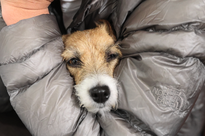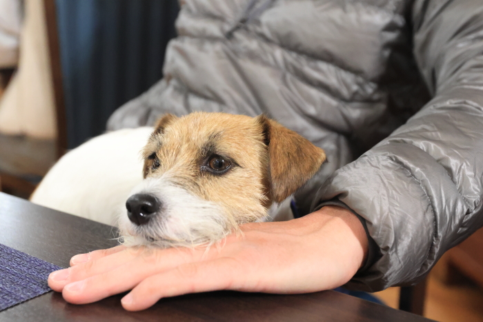カートは他の犬の匂いがするから落ち着かないらしく、膝に移動してきた。