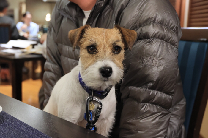 ゆとりろは犬専門なので、もちろん食堂へ犬連れOK。ほとんどの人が犬連れてた。個室利用の人もいたよ。犬嫌いのわんこは個室利用がいいかも。貸出カートがあったので、とりあえず借りてみた。