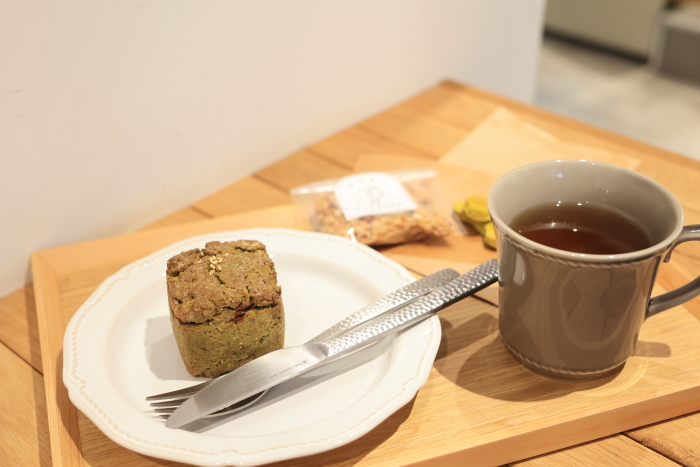1周年限定の抹茶と発酵さつまいもあんのブロックケーキ。これがめっちゃ美味しかった。外は硬くて、中はとろとろのねっとり。出来立てを頂いたから、余計、中のねっとり感が強かった。