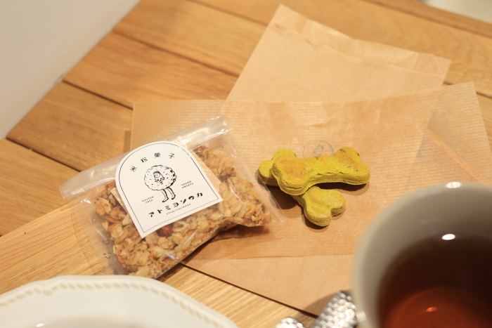 来店プレゼントを頂いた。グラノーラ。オープンした時にも頂いて、1周年でも頂いた。うれしいね。今回は犬用クッキーも用意してくれたよ。