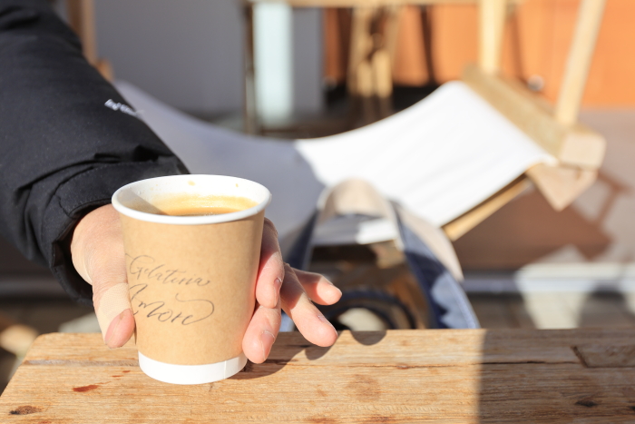1年ぶりにまた来た、ジェラテリア。お正月に犬連れでお茶できるところってここくらいしかなくて。