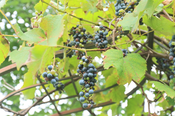 目の前にはワイン用のぶどう畑。甘い香りが漂う。