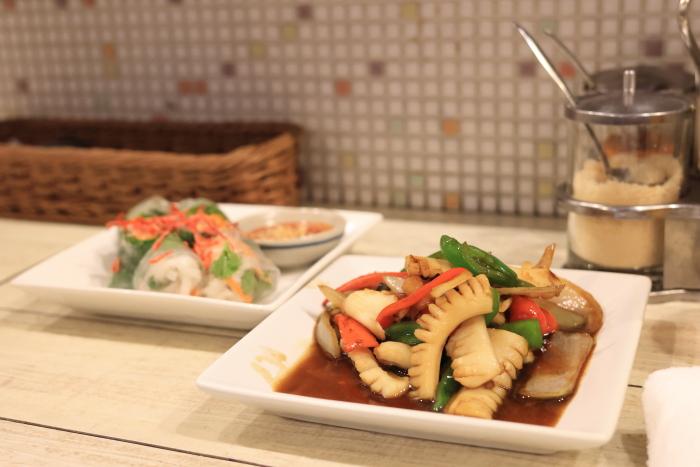 ガパオ・プラームック、イカのガパオ炒め。これも美味しい。イカは脂質低いから嬉しい。