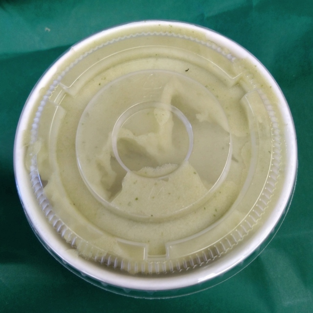 菜の花のジェラートだよ。びっくり!一口食べたら苦み。けど、後からふわっと香る柑橘。何だろう?って思って、店長に聞いたら、ばんぺいゆと柚子胡椒を入れてるんだって。菜の花の辛し和えをイメージしたんだそう。この時、ジェラートの名前が「菜の花」だったから、「菜の花サラダ」がいいよ!ってお喋りしてたら、翌日には「菜の花サラダ」に名前が変わってた。きっと、売れると思う。爽やかな春のサラダだもん。