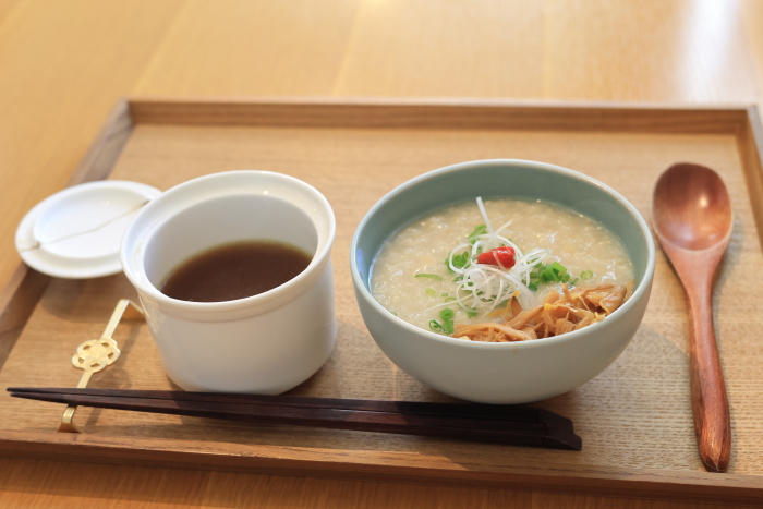 金針菜おかゆ。金針菜とは、ユリ科のホオンカンゾウの花のつぼみを乾燥させた中華食材。