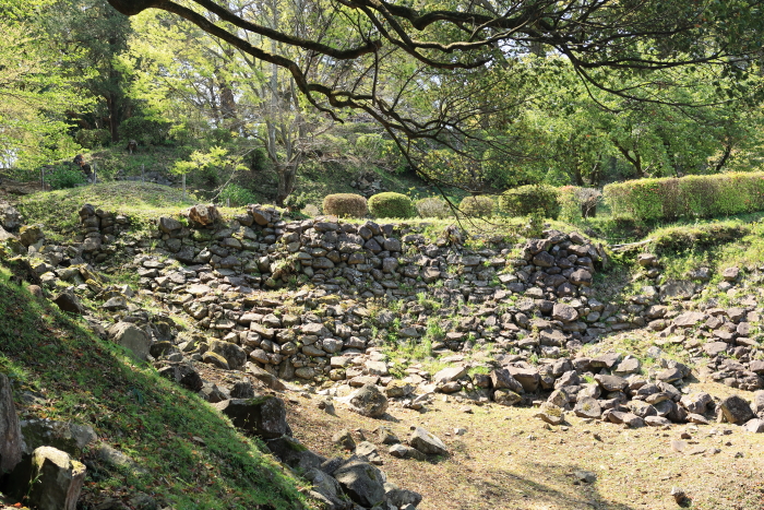 城跡らしく、ちゃんと石垣が残っている。歴史の勉強にもなる。地味にジオパークだし。
