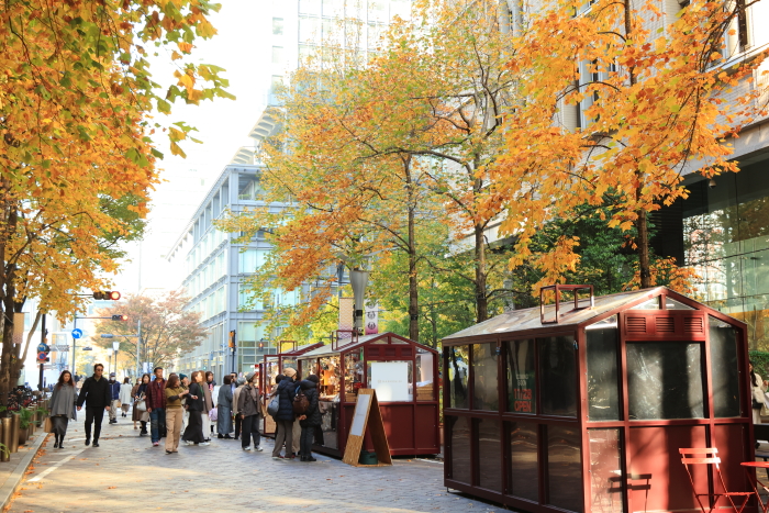 イルミネーションが始まる前も今はホコ天で、キッチンカーやクリスマスマーケットが楽しめる。丸の内が年々楽しくなるね。