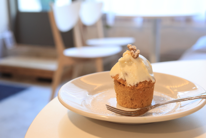 しかもグルテンフリー。最高過ぎる。小ぶりでマフィン型。スパイスは控えめでも強くもなく、ちゃんと香る感じ。フロスティングは甘さと酸味両方あり。ぽってりしたフロスティングが可愛い。