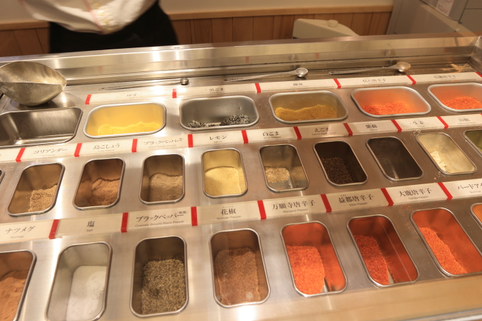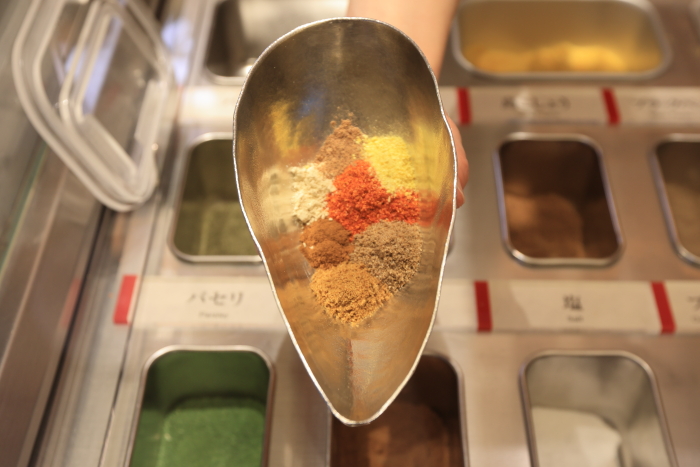 私はエスニック風七味にしたんだけど、後で気付いたら八幡屋の商品「ガラムマサラ」に似ている。ターメリックの有無くらいで、あとは微妙な違い。