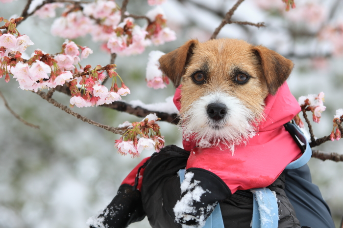 カンザクラかな?雪が積もって綺麗だった。