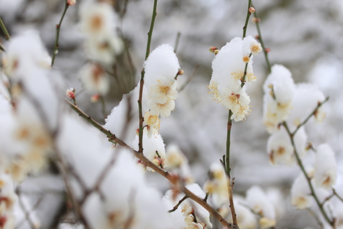 蝋梅にも雪。北の丸公園は穴場だなといつ行っても思う。お気に入りの公園の1つ。