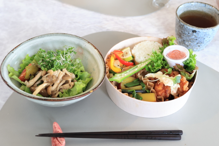 家にあった野菜でサラダも付けて、ヘルシーランチ。