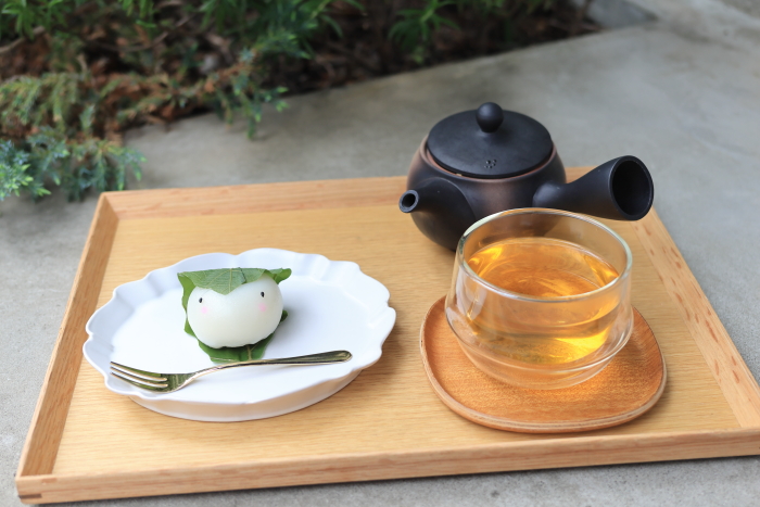 季節限定のかしわ餅とお気に入りの茎ほうじ茶。