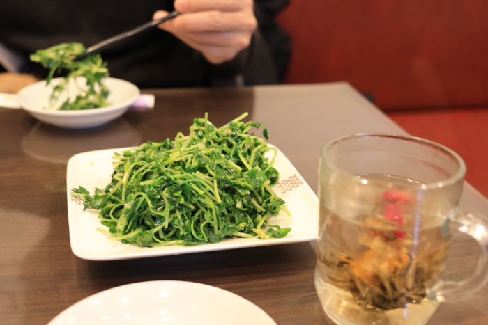 野生山椒と豆苗和え、中華マリネって感じ。美味しい。