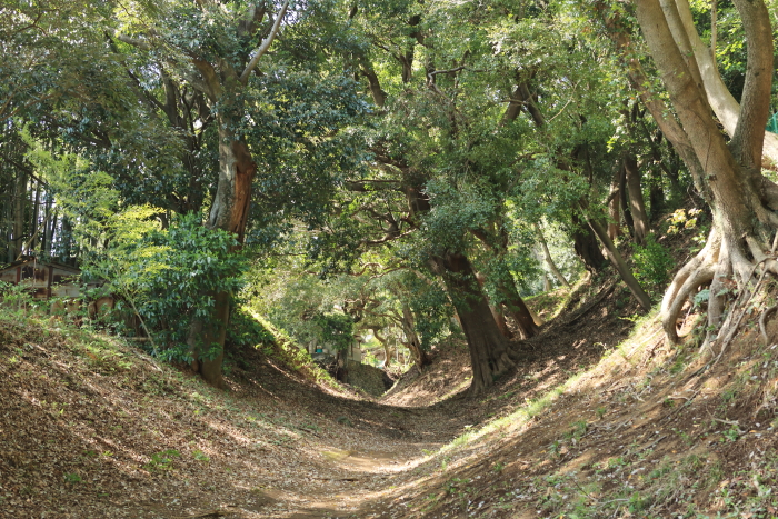 土塁のそばにある、ここも歴史的な場所。誰もいないけど。小峯御鐘ノ台大堀切東堀という場所。歴史を感じながら、自然の中を散歩できる。小田原城からすぐ近くだけど、本当に人がいないから、穴場スポットです。地味過ぎて良さが伝わらないのが残念。