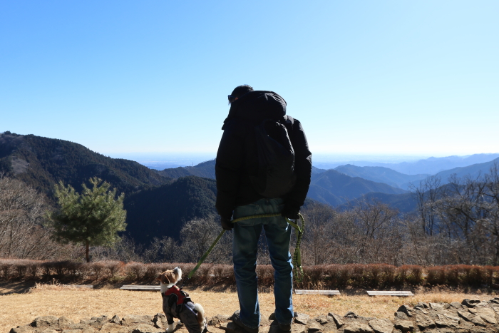 御嶽山ケーブルカーに乗って、神社へあっという間についてお参り。このまま帰るのはもったいないと思って、少しハイキングすることに。御嶽山の公式HPに掲載されている「愛犬散歩コース」をめぐることに。所要時間は約3~6時間って書いてあるけど、全然そんなことなくて。休憩なしで、普通歩きで、3.5時間でまわれる。