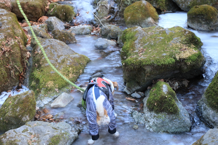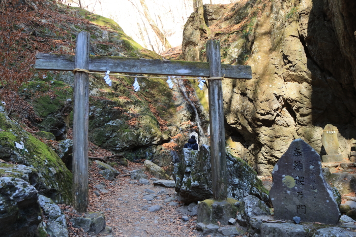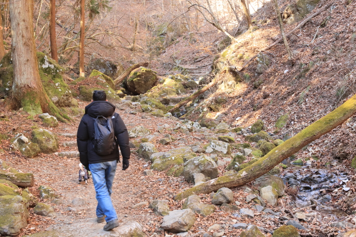 滝行の綾広の滝。凍ってるから、ちょろちょろしか水量がなかった。これで、御嶽山の散策、おわり。予想外に楽しかった。犬連れは10時ぐらいまでにケーブルカーに乗ることをおすすめします!それ以降だと、混む。帰り道、参道が結構人が多くて、歩きづらかったから。