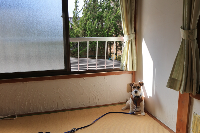 民宿でのお泊り、2日目の朝。お庭を散策。ルルは部屋でトイレしないから、夜中も起きて、外へ連れて行く。先代のココモの介護の時、夜中に何回もトイレへ連れて行くことが日課になっていたから、今もルルのほんのわずかな気配で起きられる。習慣とはすごいものだ。もう1人さんが起きても何も気が付かないけど、ルルの動きだけは瞬間的に反応できる私。