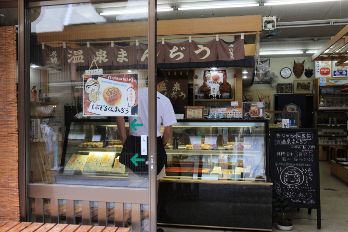 中身の説明がないので、お店の方に聞かないと分からないんだけどね。パンも売ってるけど、個人的には温泉饅頭がおすすめ。