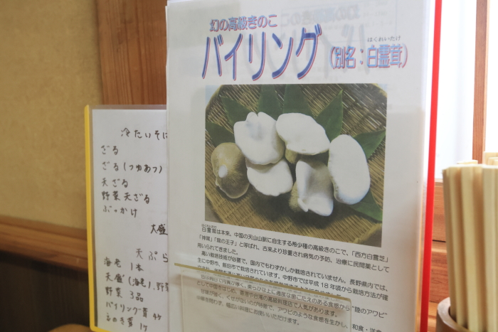 バイリングというきのこ、上品でとっても美味しかった。蕎麦も美味しい!新そばになったら、もっと美味しんだと思う。