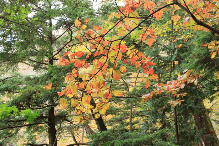 色づいた木を探さないと紅葉っぽさが全然感じられず。