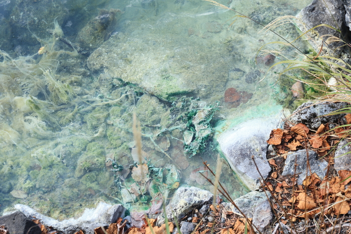 湯ノ湖の北東側に温泉が湧き出ているところがある。ここは絶対見るべきポイント!久しぶりの1周、楽しかった。