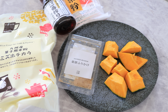 水を入れると失敗するから、カボチャの水分だけで生地をまとめたんだよ。