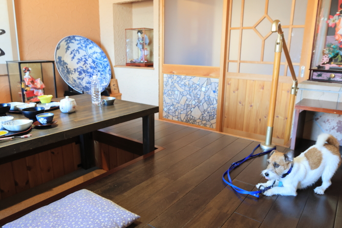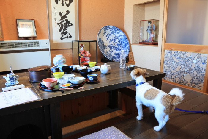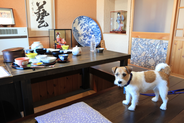 初めての個室。お客さんがいない時は個室で犬OKになるって以前伺ってたけど、まさか今回そんなチャンスが訪れるとは思ってなくて、予想外で嬉しかった。けど、宿側としては、お客さん1組って経営が不安だよね。