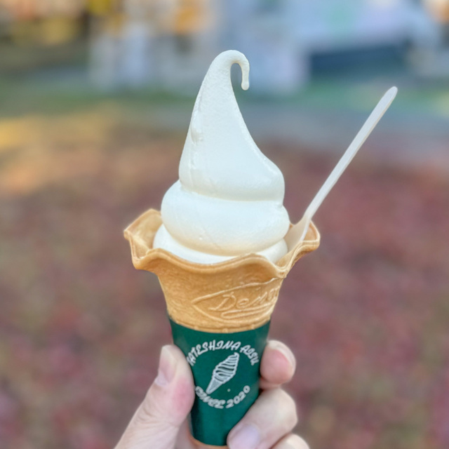 牛乳ソフトクリーム。原村の八ヶ岳実践大学校の牛乳を使用。キュートなルックスです。