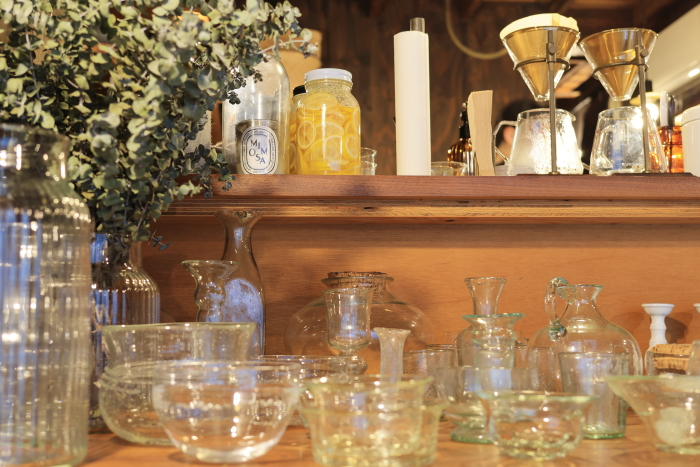 犬は1階席のみ。食べているテーブルの隣に売り物のガラス。動き回る犬もNGってことだよね?ガラス食器が売られているんだもの。緊張する空間。いいね、ほんと好き。
