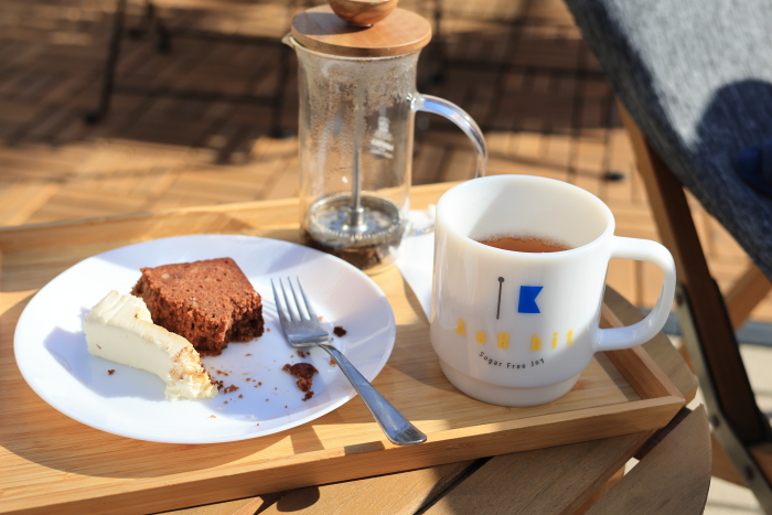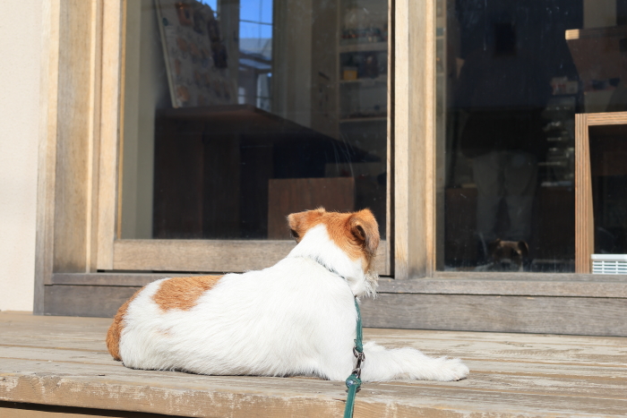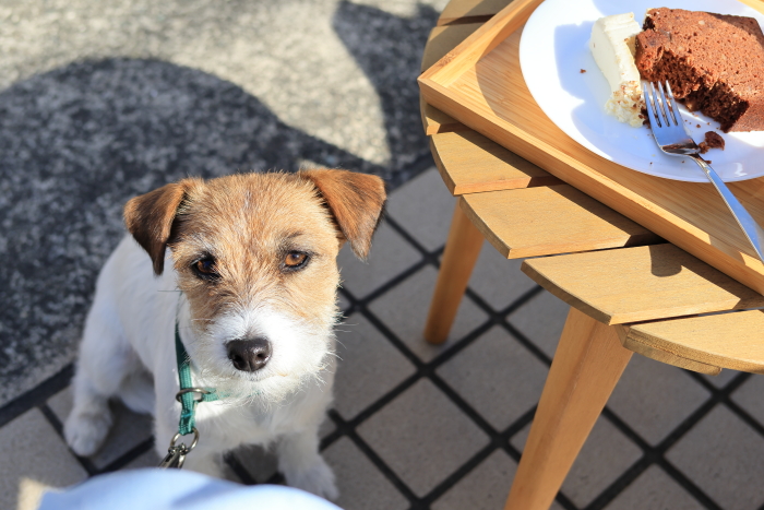 テラス席は犬OK。テラスといっても、個人宅みたいなお店で、お店の入り口に簡易的に置いてあるテーブルとキャンプ用のイスだから、雨の日や暑い日、寒い日は利用が厳しい。