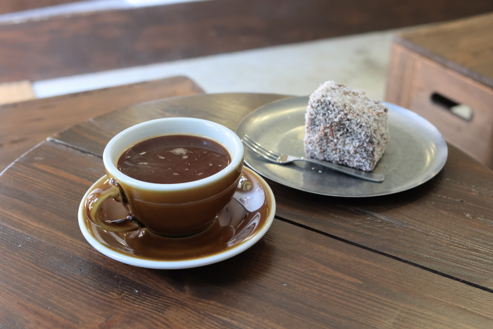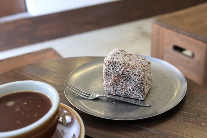 11回目のall ways。ポイントカードがたまり、今回はドリンク無料。せっかくなので、ラミントンを注文。