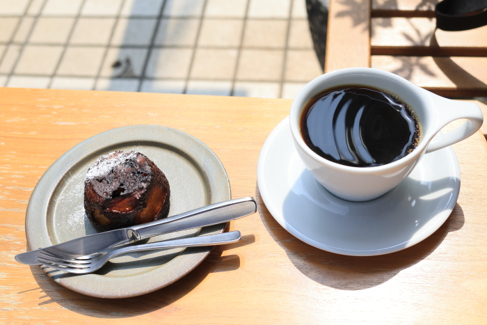 コーヒーを見てもらうとわかるように、外の席は傾斜がきつめ。ちょっと居心地悪いけど、長居する訳じゃないので我慢。店内OKならいいのいなぁ。OKな雰囲気なんだけどね。