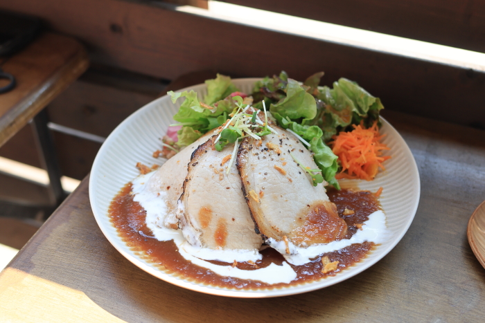 私はローストポークのごはん少なめ。もっとこってりしてるのかな?って思ったけど、和風の味付けで、豚の脂身も少なく食べやすかった。しっとりやわらか。