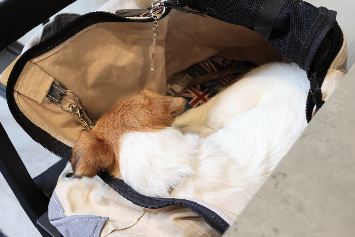 ルルは眠くて、ずっとバッグの中で寝てた。