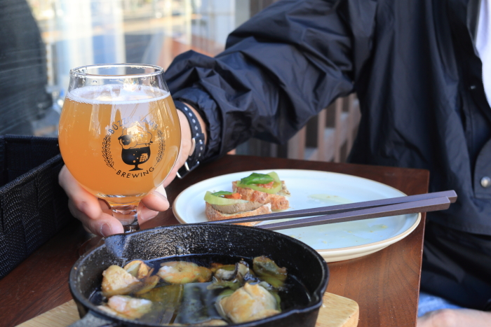 近所をお散歩。ちょっとビールを飲んで、ちょっとつまみたいっていうリクエストを受けた。私はお酒が飲めないから、飲むお店はほとんど調べたことがなく、自分の記憶をたどり、2年前にできたブルワリーを思い出す。