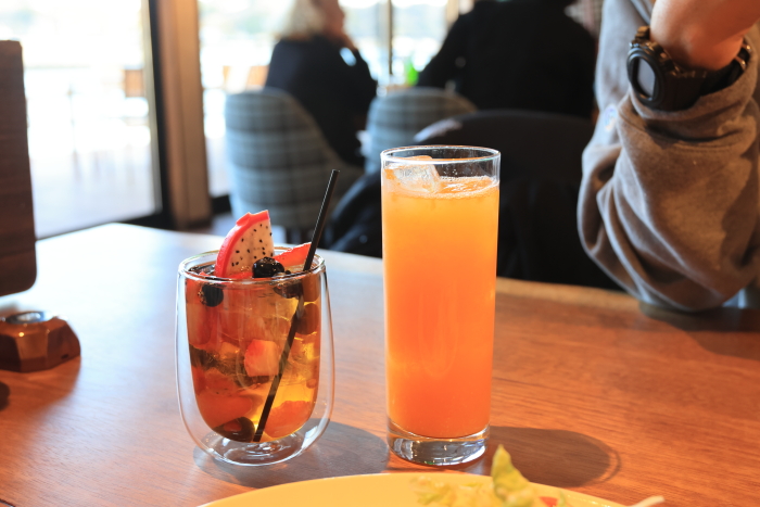 フルーツティーが可愛かったけど、肝心の紅茶が薄かった。もう少し濃い目に抽出お願い!搾りたてのフレッシュジュース、みかんだったかな?は美味しかったみたい。他のお客さんも頼んでた。