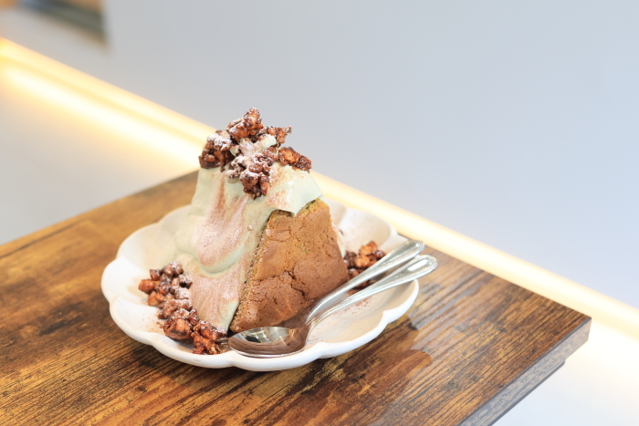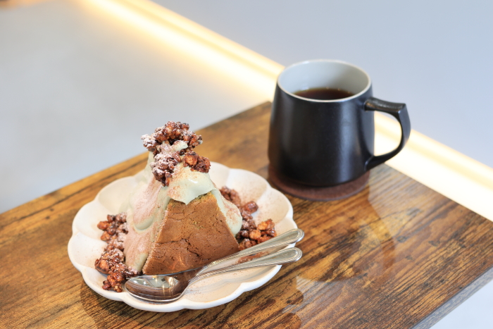 シフォンケーキって食感が単調だから、普段は頼まない。ふわふわは想像できるから。けど、ここは違った。ザクザクのキャラメルナッツ、クリームがとろり、ふわふわの香り豊かなシフォン。かなりクオリティが高い。