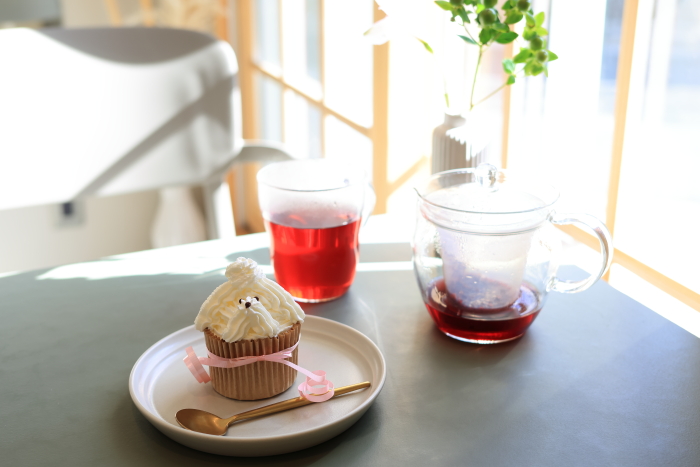 わんこは店内一部OK。静かなカフェだから、カフェ慣れしてない子はテラス席がいいかも。