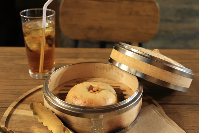 イートインはベーグルが蒸される!驚いた。いつも家ではトーストにしてたんだけど、蒸した方がもっちり感が増した気がする。