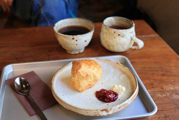 ここのいいところは、焼菓子と器。焼菓子は美味しいし、器は弓立窯のものでめっちゃ素敵。