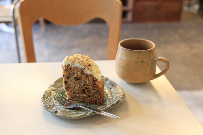 少し前から始まったキャロケ。ここのスパイスチャイケーキをキャロケ仕様にした感じ。レーズン、人参、クルミ入り。フロスティングにもクルミがのっている。スパイスはあんまり感じられず。スパイスチャイケーキのほうがスパイス感があったかも。たぶん、具材が増えたから、スパイスが感じにくくなったのだと思う。