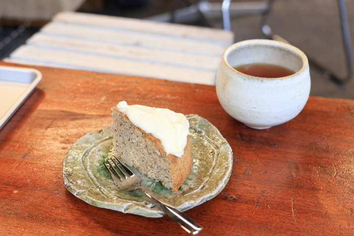 スパイスチャイケーキ。前回もこれを頼んだ。これは美味しい。けど、最初に添えられていたのがスプーンだった。おい!!!