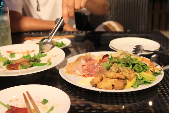 ピザ・パスタもあるけど、ここはそれ以外もちゃんとあって、食べてみたい!って思った。鎌倉野菜たっぷり。カルパッチョ。